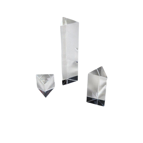 - Set of three crystal-clear acrylic, equilateral prisms 25mm faces,