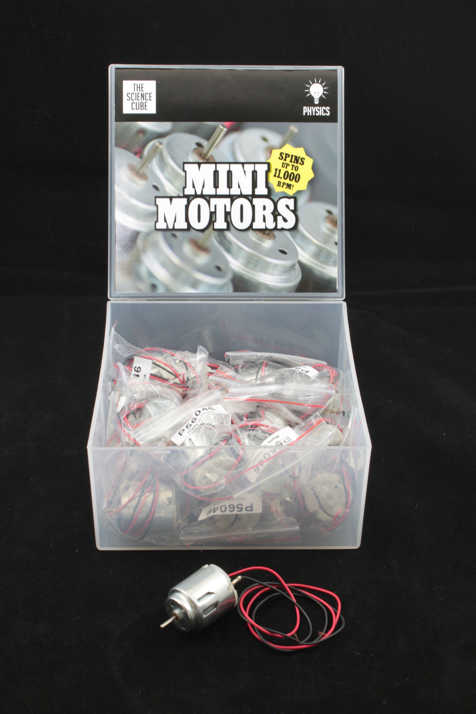 This little yet powerful motor is ideal for hundreds of electrical experiments and projects. Voltage requirements are 1.5 to 3 DC volts. RPM is between 7,000– 11,000. Each unit also incorporates 12” red and black connector leads. Box includes 20 motors and a pad of 25 tear-off informational sheets.