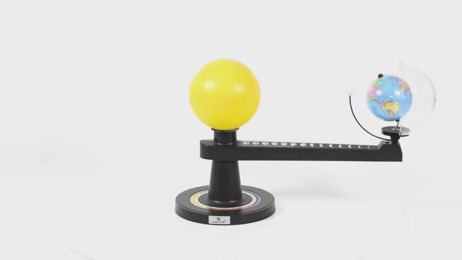 How many days does it take the Earth to revolve around the Sun? The answer to this question and more are answered when using this gear-driven model representing the Sun, Moon, and Earth and their relationships. Daylight, night, seasons, and phases of the Moon are all effectively demonstrated.