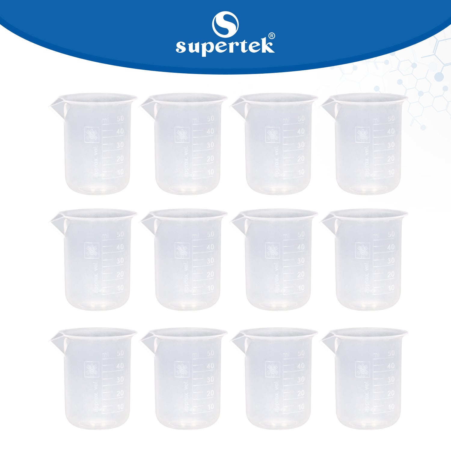 Supertek Beaker, Polypropylene 50 ml (12 beakers per Package)