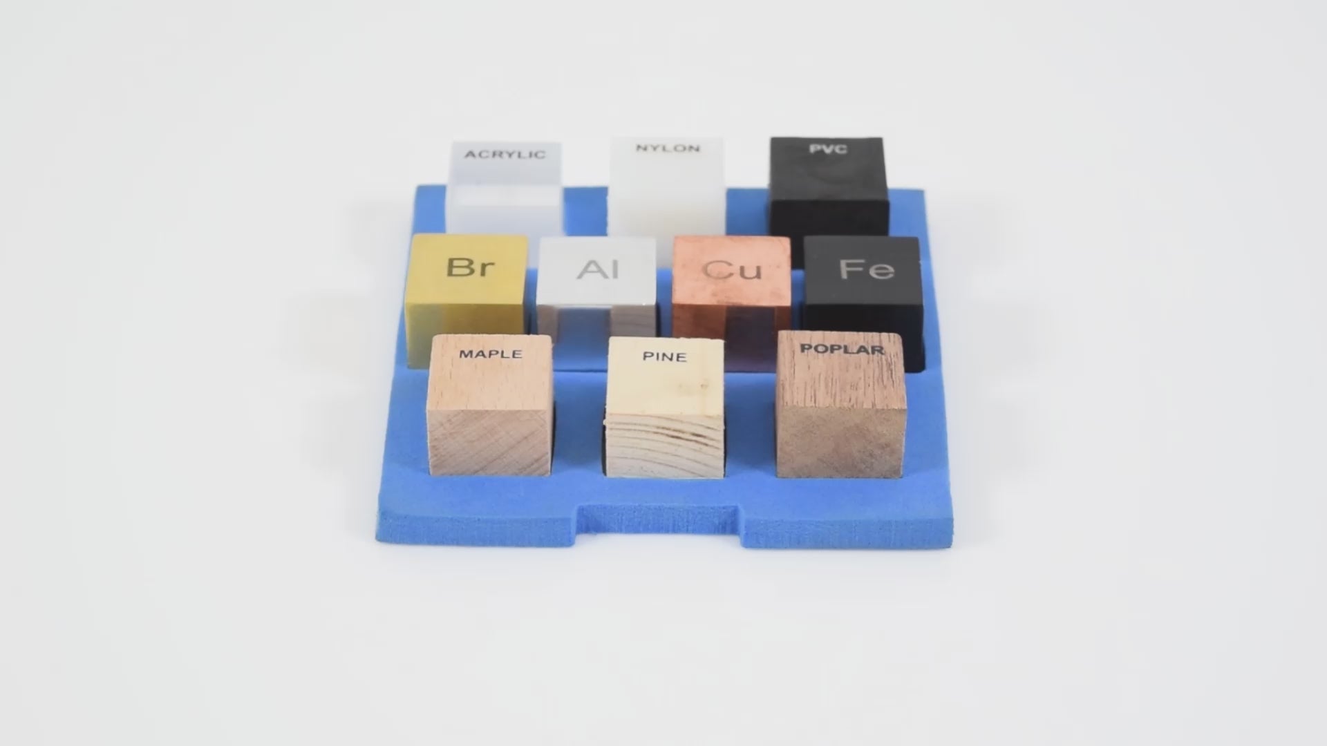 A set of 10, one inch density cubes in a storage box. Materials included are: